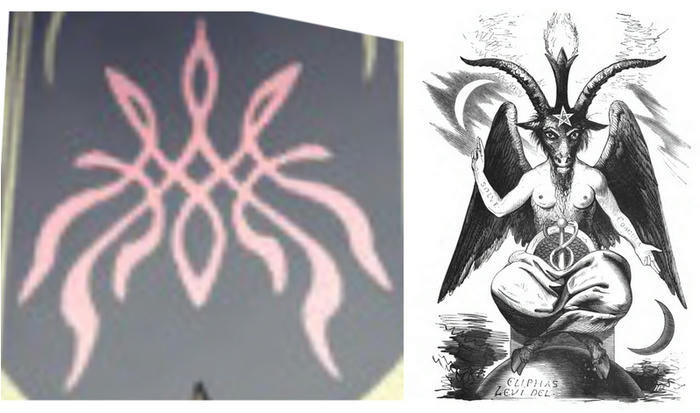 炎の紋章は逆さにするとバフォメットという神(または悪魔)になんか似てる気がするような…。
