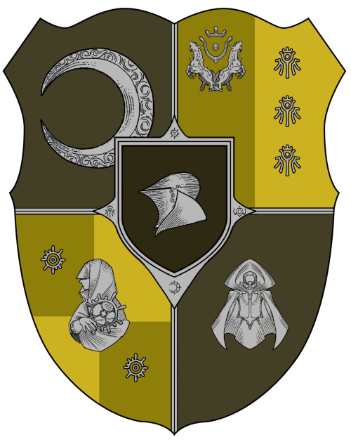 盾のような形をした部分をエスカッシャンといい、更にその中にある盾はインエスカッシャンというようです。